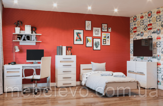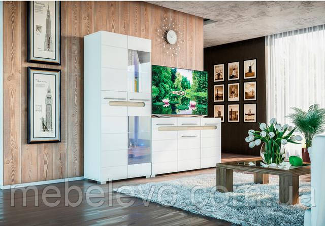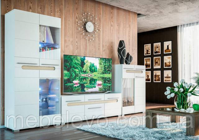 Меблі виконана в комбінованому кольорі білий глянець+дуб сонома.