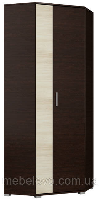 Кутова конструкція шафи не займе багато місця, при цьому він має дуже місткою конструкцією.Шафа кутовий ШКУ-14 Бриз дводверний,він має одну орні двері і одну декоративну планку, яка так само відкривається як основна двері шафи. Шафа оснащена штангою для тремпелей і полицями. Завдяки ШКУ-14, у вашому будинку не буде витрачено ні одного сантиметра житлоплощі, а ваші речі будуть у повному порядку.