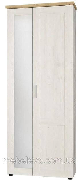 Високий шафа не займе багато місця і відмінно підійде для невеликих кімнат.Шафа дводверна, одна з дверей має дзеркальну вставку. Всередині розташована штанга для одягу і полички зверху і знизу.Дзеркало дозволяє візуально розширити простір і додати світла у вузький коридор, особливо для маленьких квартир.