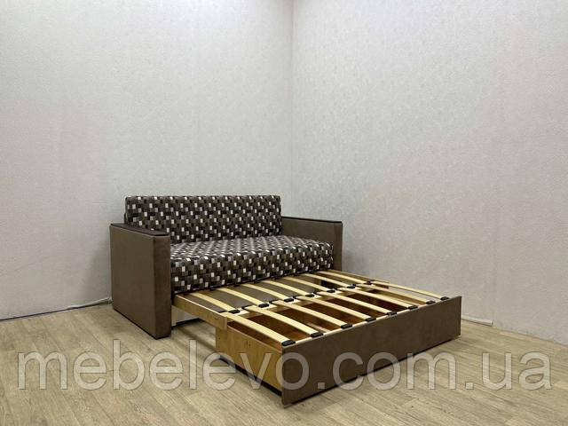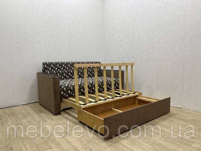 Невеликі розміри дивана дозволять розмістити його навіть в самій маленькій кімнаті. За допомогою механізму розкладки "Телескоп", перекидного матраца і букових ламелей, диван перетворюватися в зручне спальне місце з ортопедичним ефектом для сну.Високоеластичний пінополіуретан в матраці забезпечує комфорт і довговічність служби дивана.Під висувною частиною дивана розташований широкий білизняний ящик.