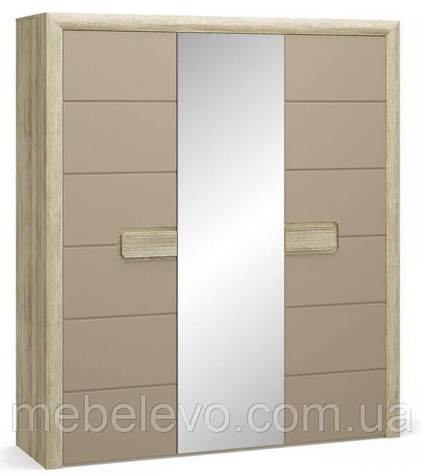 Широка і містка шафа-відмінна можливість розмістити весь ваш гардероб. Шафа тридверна.Внутрішнє наповнення шафи: чотири вузькі полиці для одягу та аксесуарів у відділенні зліва,а також штанга для одягу і верхня полиця у відділенні праворуч.Дзеркало на центральному фасаді візуально збільшить приміщення і зробить його візуально світліше і просторіше.