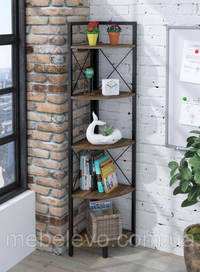 Завдяки кутовий конструкції цей стелаж дозволяє більш практично використовувати кути кімнати, не загороджуючи простір.Високий компактний стелаж складається з 5 відкритих полиць для розміщення книг, фотографій в рамках, предметів декору. .Стелаж оснащений регульованими ніжками, які дозволяють виставити його на нерівній підлозі.Полиці виготовлені з ламінованого ДСП. Вони кріпляться до каркаса за допомогою гвинтів. Завдяки цьому стелаж можна збирати і розбирати безліч разів. Це зручно особливо для використання в офісах, з яких доводиться часто переїжджати. нижня полиця має додаткову ніжку для забезпечення стійкості стелажа.