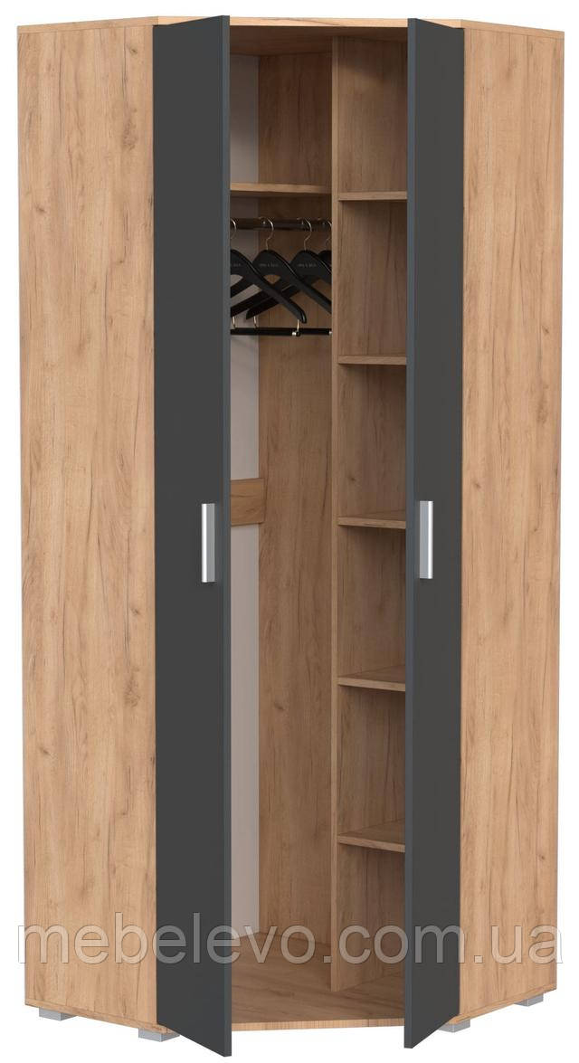 Шафа кутова "ШКУ-14"- справжня перлина вашого інтер'єру, яка наведе порядок в кімнаті! Шафа виготовляється у великому виборі кольорів, завдяки чому ви підберете модель виключно під Ваш інтер'єр. Комбінування кольорів дає вам можливість неповторну і індивідуальну модель.Шафа в стилі мінімалізм зі строгими прямими лініями, універсальними кольрами і відсутністю зайвого декору створює атмосферу затишку і сучасності.