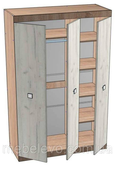 Широкий Тридверна шафа-справжня знахідка для будь-якої кімнати будинку і офісу, яка розмістить весь ваш гардероб! Вона поєднує в собі функціональність, міцність і естетичну привабливість, допомагаючи створити затишок і організувати простір в кімнаті. Шафа містить два відділи: великий і маленький.Великий відділ містить широку полицю для речей і штангу для одягу під нею. Маленький бічний відділ представлений рядом з п'яти поличок, які знаходяться на однаковій відстані один від одного, де можна розмістити ті речі, яким не підходить штанга. Колір ручок можна вибрати: алюміній або чорний.