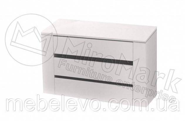 Фурнітура: Металева хромована ручка з гвинтами (з різьбленням М4) Пластмасова ніжка, покрита хромом в колір ручки; Трехкомпанентные кулькові підвищеної міцності телескопічні направляючі повного висунення; Завісу підвищеної міцності з плавним закриттям; Розсувний механізм шаф-купе hettich. Можлива доукомплектація опцією плавного закриття; Металеві фіксують, антивисувни тримачі; З'єднання деталей за допомогою ексцентрикової стяжки (MINIFIX).