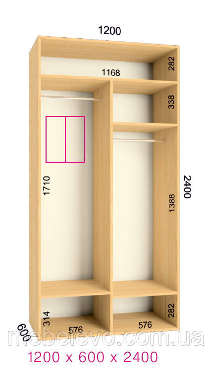 Розміри: Висота - 2400мм; Ширина - 1200мм; Глибина - 600мм