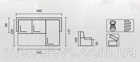 | Спальне місце | пружинна змійка, пружинний блок, пінополіуретан |